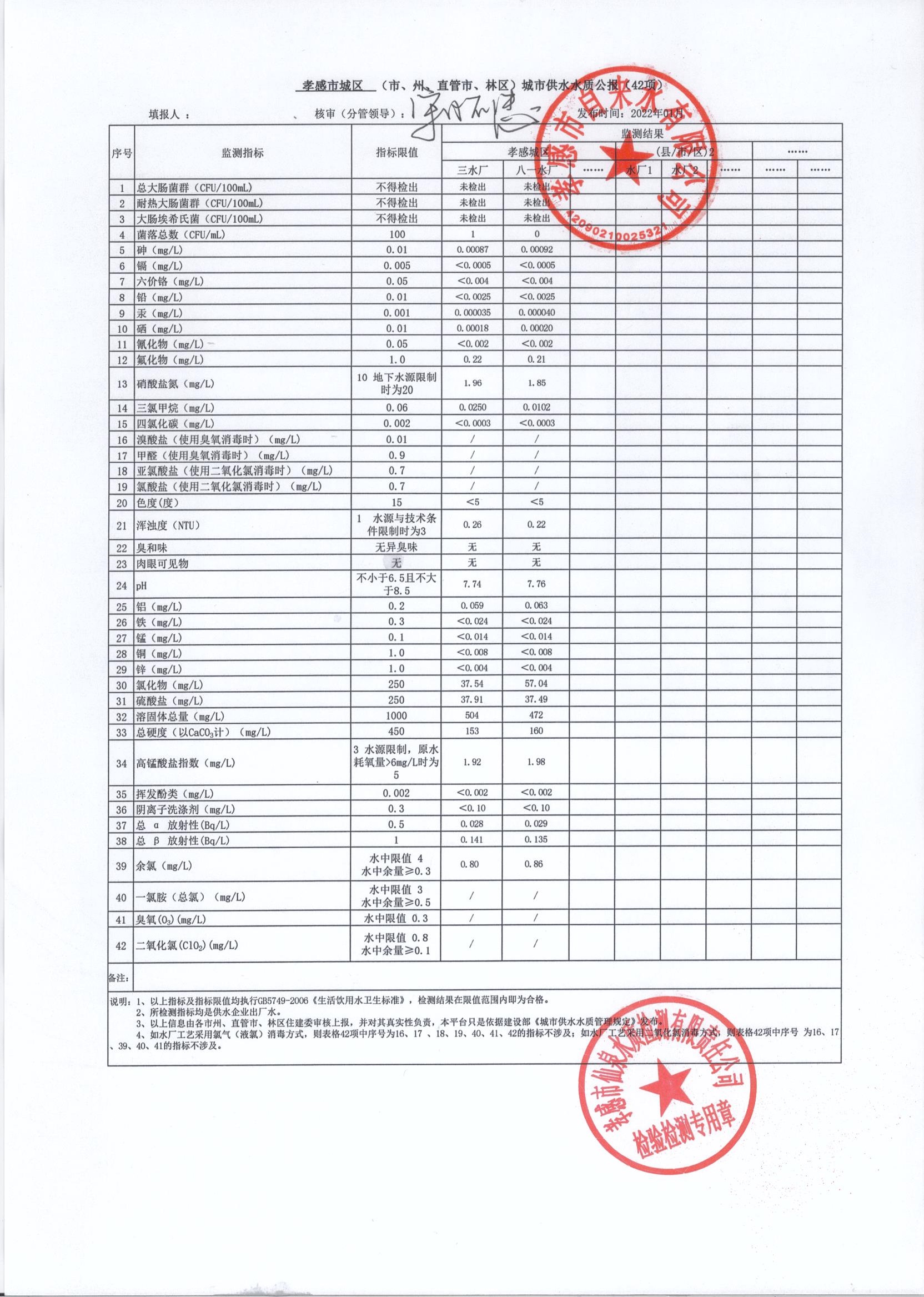 2022年1月水質報告