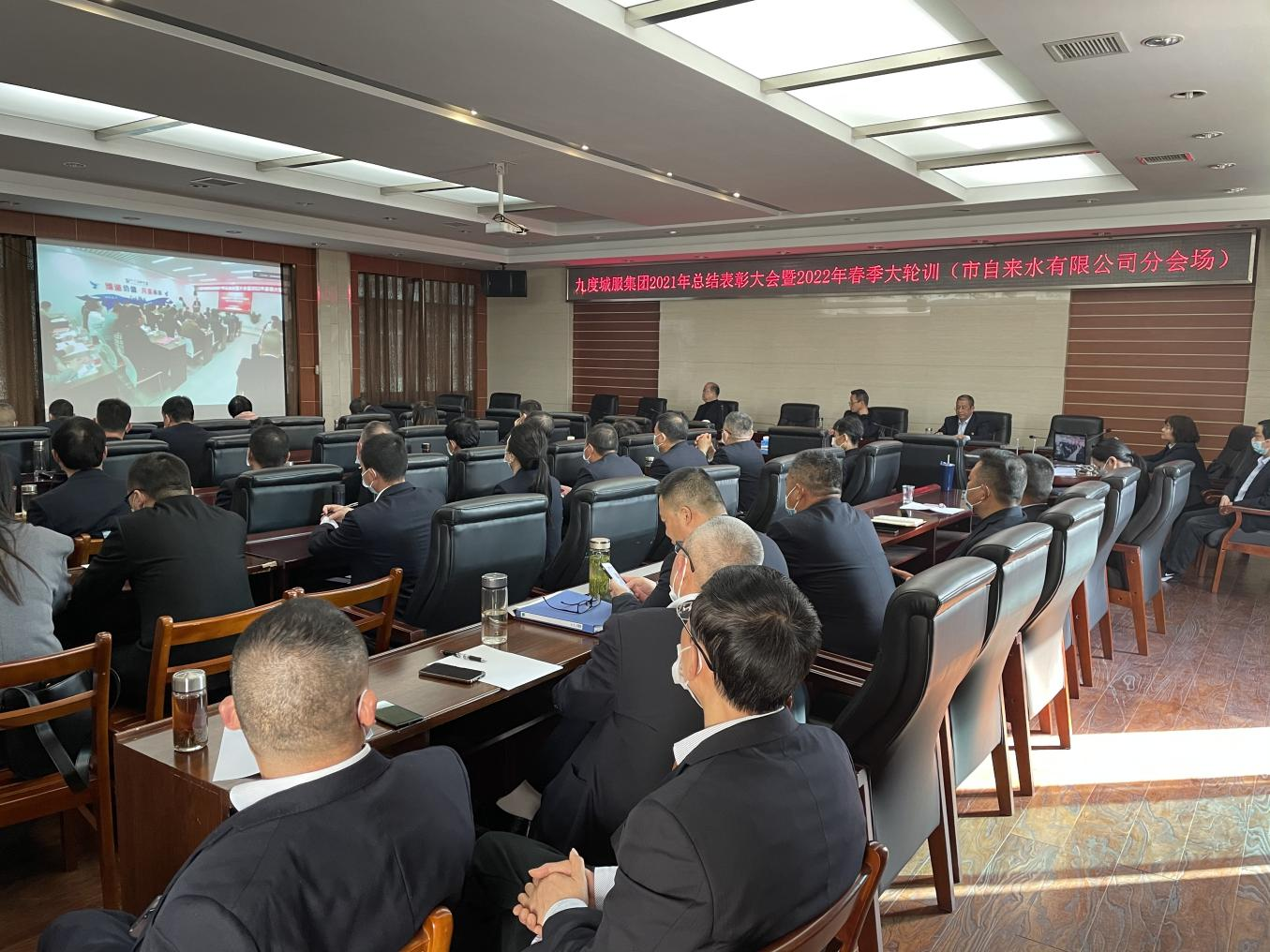 3月11日-12日,在市自來水公司三水廠會議室,中層副職及以上人員以視頻會議的方式參加了九度城服集團2021年度總結表彰暨2022年春季大輪訓。