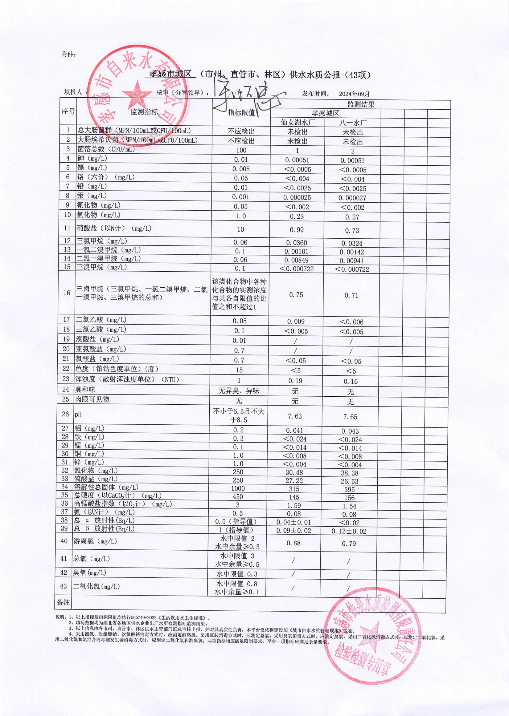 2024年9月水質(zhì)報(bào)告