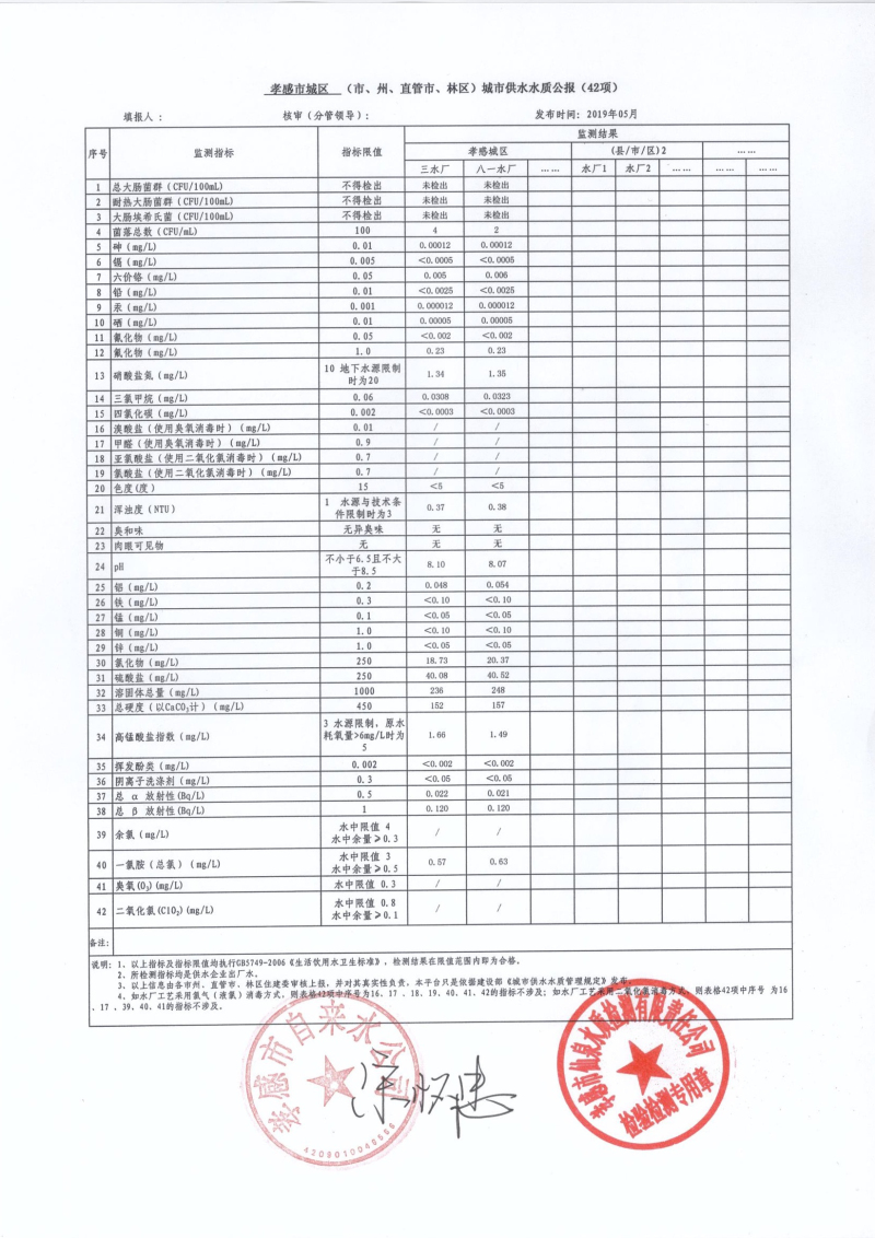 2019年5月水質(zhì)報(bào)告