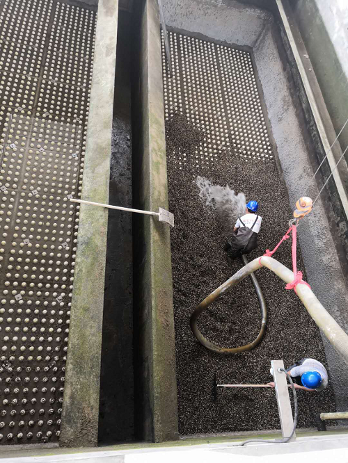 更換V型濾池濾料 保障水質安全